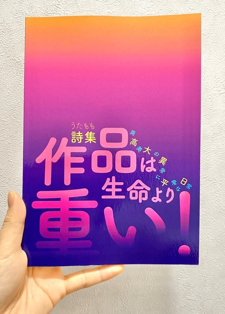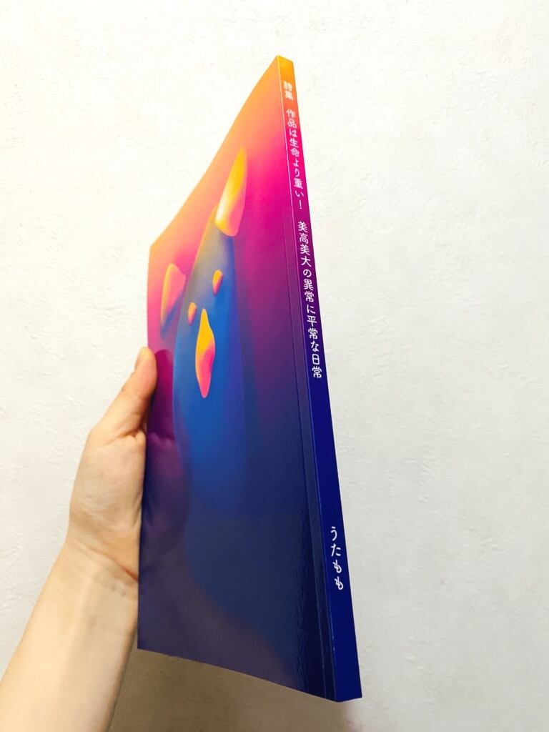 140P A5 テーマは【磨奉美術学校】 わたしの実体験を元にした美術の学校の詩。 14歳の美術系高校受験から 24歳の美術大学卒業後の生活までの 10年間を描いた青春群像劇 実際に印刷された本のほうが綺麗なグラデーションに見えます。